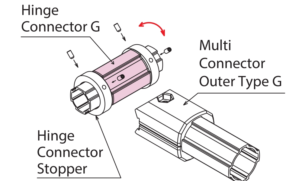 Multi Connector Outer Type G (43 mm) is possible for grip Hinge Connector.
